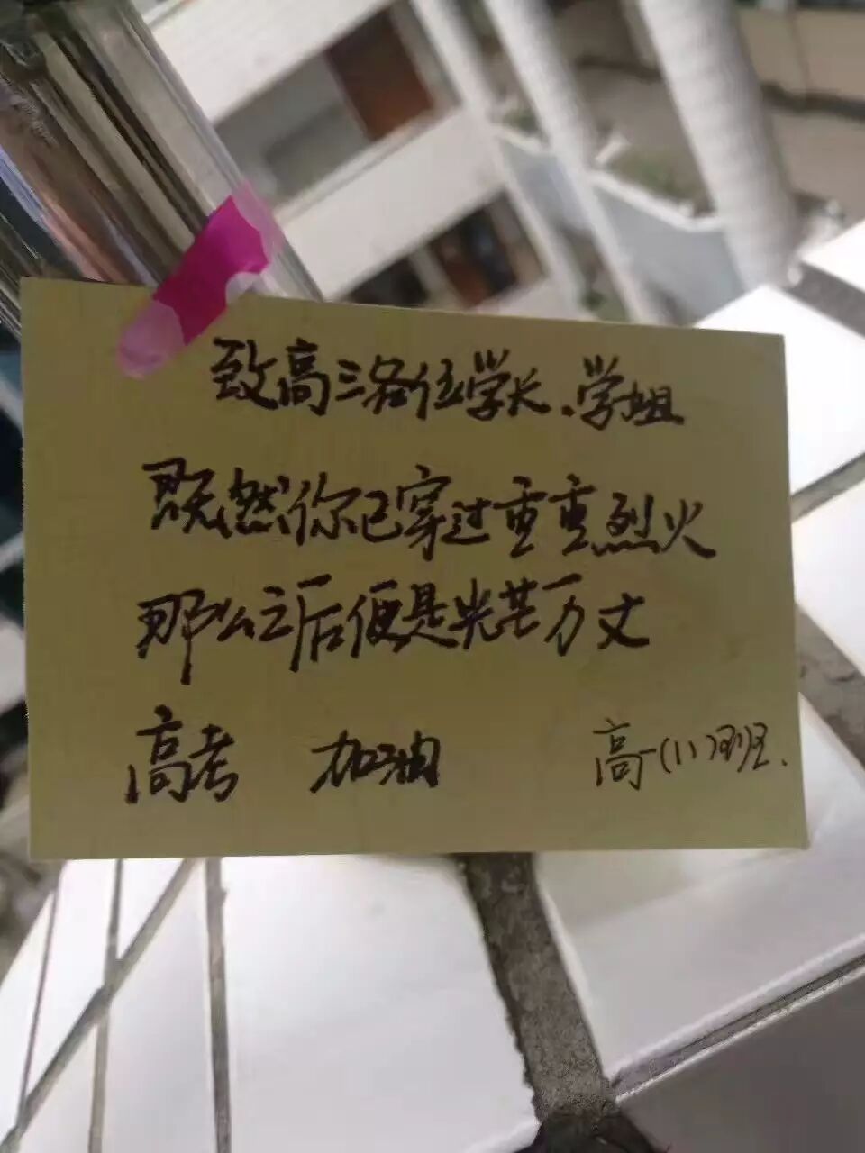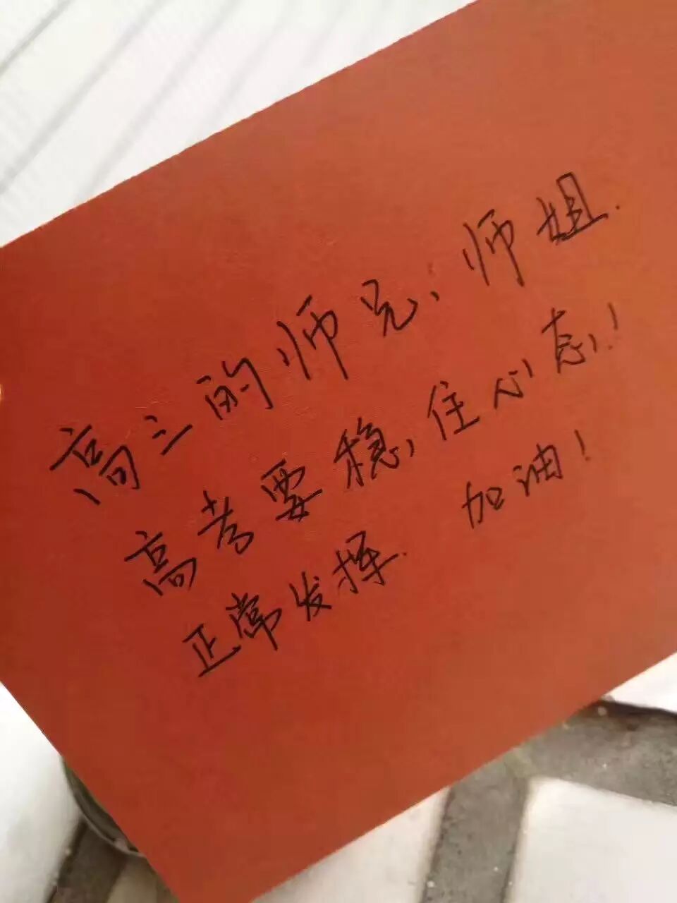 这一组图片和题目,是儿子语文邵老师朋友圈里发的,看了之后心里有一种小感动。这一步一张的小卡片儿,是低年级同学给即将参加高考的学长学姐们写下的祝福。