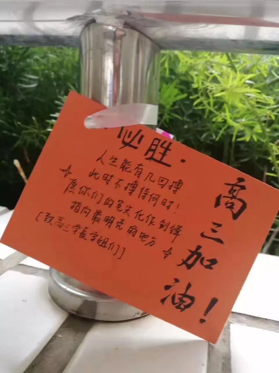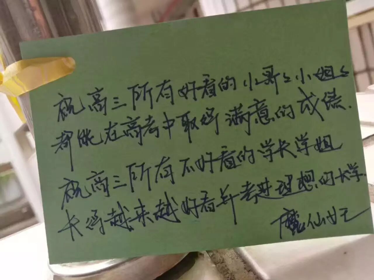 邵老师配上的文字是:有一种悲壮叫“高三,加油!”,我怎么觉得一点儿也不悲壮呢?这些90后00后的孩子写下的字句,让人觉得都好可爱~