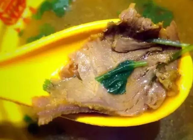 2两生煎+1碗咖喱牛肉汤,这是上海人吃生煎的传统标配。大壶春这碗咖喱牛肉汤里所用的油咖喱也是店家秘方熬制的。每天从开店到打烊,炉子上在不间断地熬制着油咖喱。每碗咖喱牛肉汤里有8 – 10片一寸见方的薄切牛腱肉片,牛肉的口感吃上去同样很新鲜。师傅会告诉你,吃生煎配咖喱牛肉汤,这是顶顶赞的搭配了。