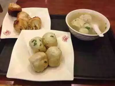 当客人需要时,厨师将炸好的排骨及年糕放入卤汁中“氽”几分钟,熟透后用“火钳”将排骨与年糕钳入盘中,随后用剪刀将排骨剪几刀,再洒点辣酱油,一盘上海滩上著名的“鲜得来排骨年糕”就成啦!看起来相貌平平,但吃起来也是令人惊艳的,再配上一份鱼丸汤,很棒的一顿饭啦!