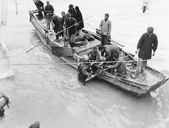 即将沉没的江亚轮,旁边还有两艘船只在作最后的营救。巨轮沉没,会形成巨大的漩涡,小船靠近沉没大船营救的风险可想而知。