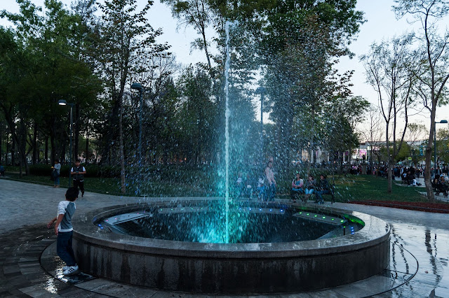 Alameda Central Park边上瞬间迸发的喷泉,让这个小男孩很兴奋