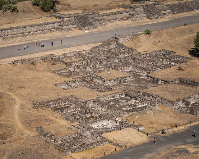 这次旅行购买的是Aeromexico的机票往返利马,回程时在Mexico City有18小时的转机时间,于是就满怀期待地拜访了这座心仪已久的都市。早晨7点多出机场,先搭乘地铁然后转乘Bus,刚上车就看到前窗中间挂了一个很大的耶稣受难十字架,看样子司机是一个很虔诚的天主教徒。车开了大约一个小时就来到了Teotihuacan,正好刚刚开门。Teotihuacan建于100 BC-250 AD,占地庞大,有辉煌的金字塔还有古代民居。