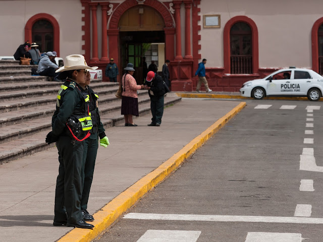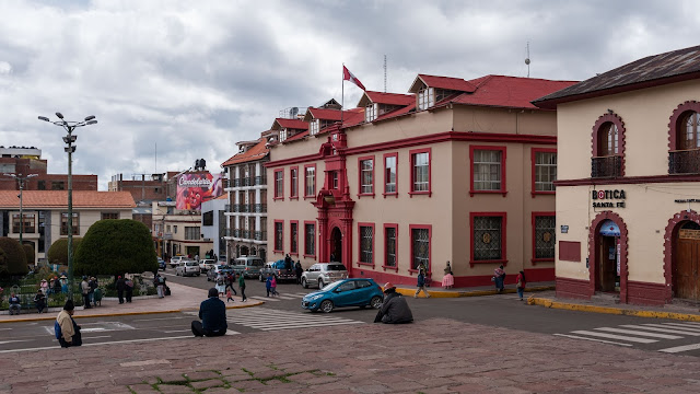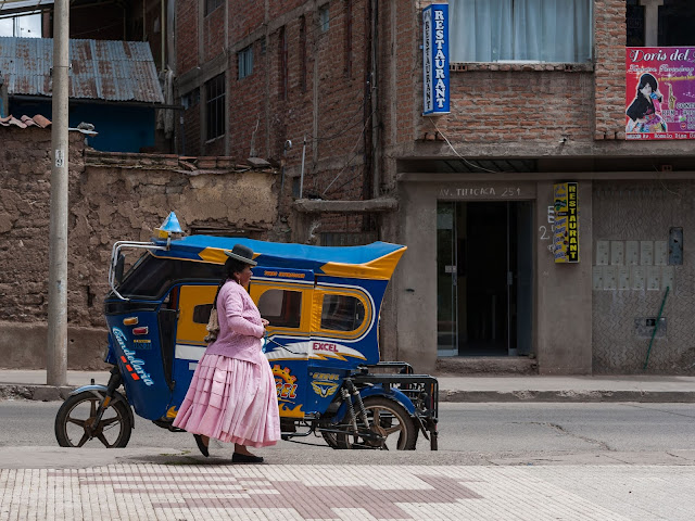 Puno坐落在美丽的Lake Titicaca (highest navigable lake in the world) 岸边,人口将近15万,比我想象的大了许多。那天从Desaguadero过境回到秘鲁,本计划搭乘Collectivo,恰巧遇到一辆Bus也去Puno,而且马上出发,就毫不犹豫地上了车。车的条件很不错,没坐满,乘客多数都是本地人。汽车沿着风景如画的Lake Titicaca开了两个多小时后,顺利到达Puno。下车就看到一个西瓜摊,买了两杯切好的西瓜,解渴又提神。旅馆离下车的地方不远,但因为有些累了,正好有一个Moto taxi在拉生意,于是花了4 Sol 把我们拉到了旅馆,很好玩:)。