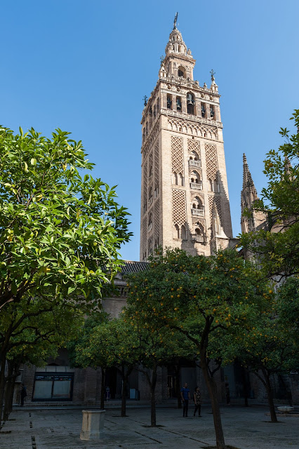 Giralda Tower高105米,由阿莫阿德家族于12世纪末主持修建,具有浓郁的伊斯兰风格。最早是伊斯兰教清真寺的尖塔,1402年改成基督教教堂的钟楼,塔身里面是坡道,旧时可以骑马上塔。塔顶的28个大钟至今仍能用优美的音色为塞维利亚居民报时。