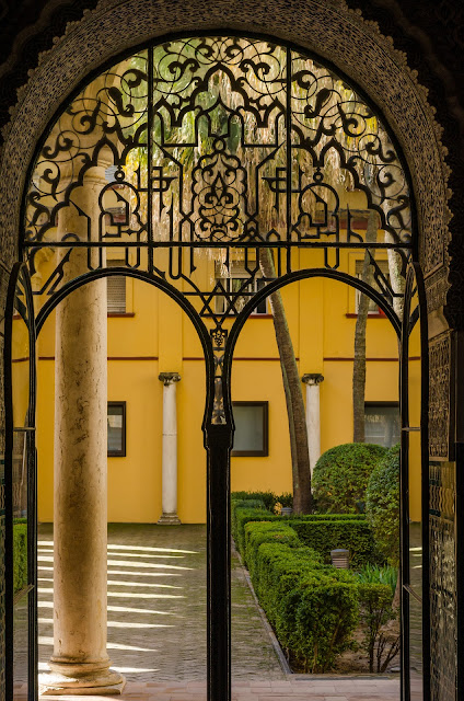 塞维利亚王宫 (Alcázar de Sevilla),修建于中世纪,最早是摩尔人的城堡。这里是王宫入口处, 大门上有一个狮子,也叫“狮门”。