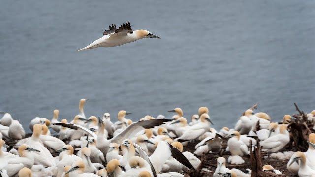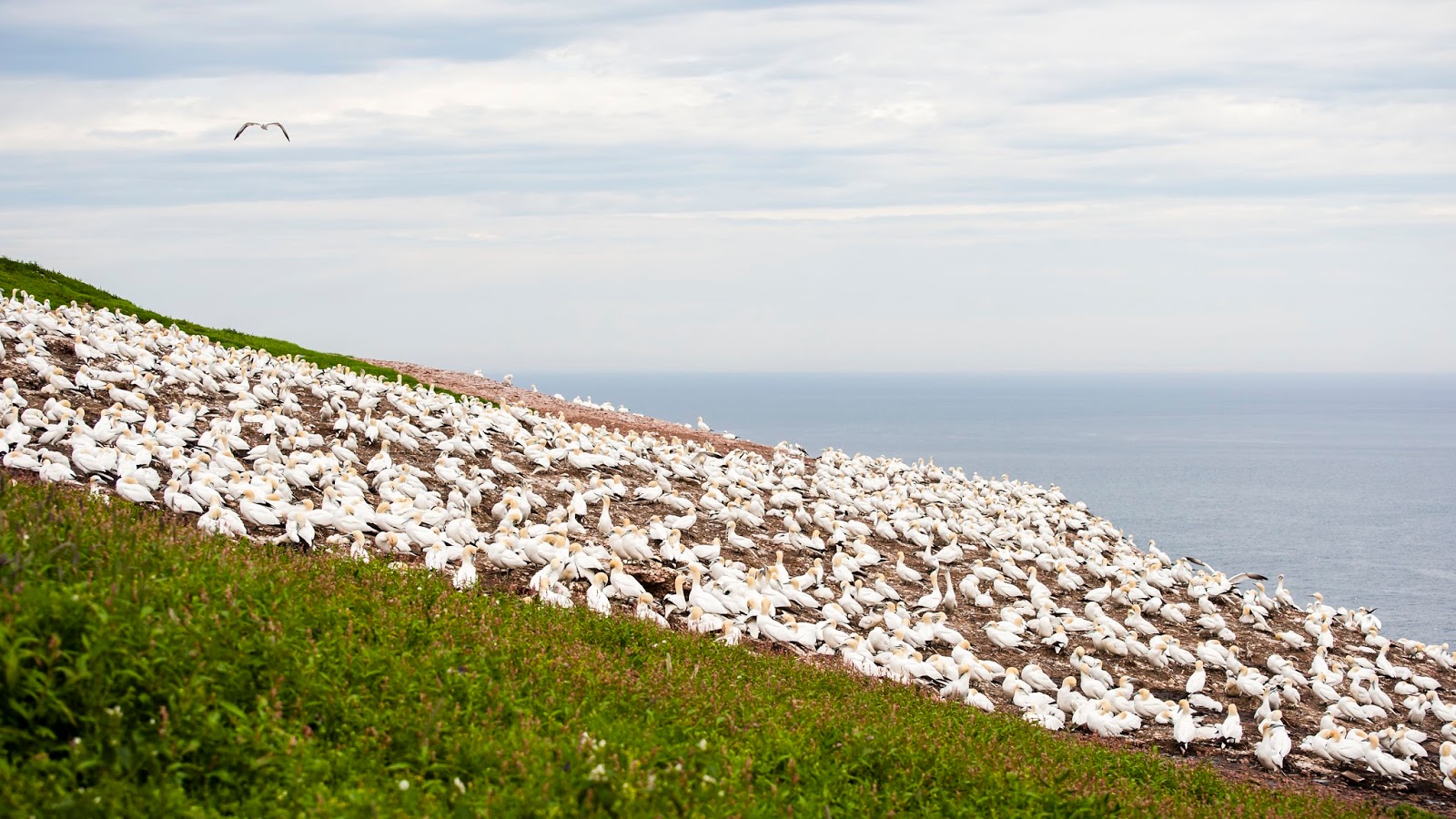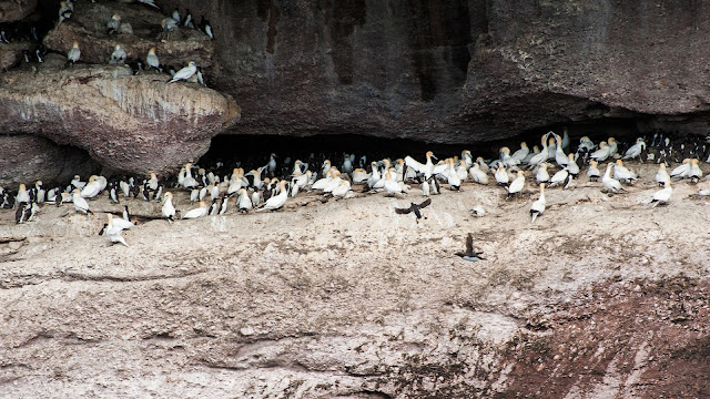 Northern Gannet密密麻麻地布满山坡,蔚为壮观