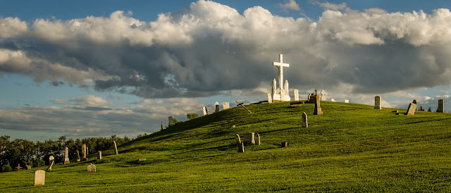 海边的小山坡上有一个简朴的十字架