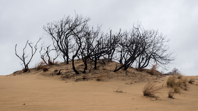 Jockey's Ridge State Park,先走过一段木板路,旁边的树干上长满青苔