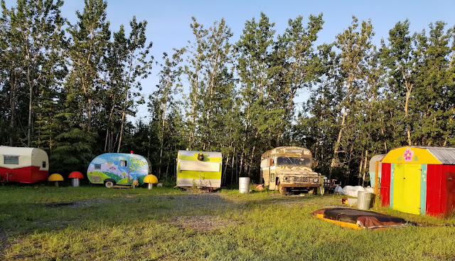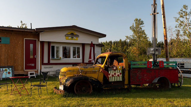 晚上下榻在一个叫做Copper Center的小地方,路过河边的时候已经将近晚上十点钟,却仍然有很多人在那里钓鱼消遣。第二天早晨又一次驾车穿过,看到一些古旧的东西散落在街头巷尾,新鲜又好玩。好奇这些玩具般的Trailer是不是仍然在使用?