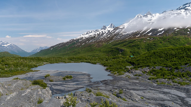 最近看了高晓松的“最远的边疆阿拉斯加”,不禁勾起我对去年夏天阿拉斯加之行的美好回忆。在我的记忆中,最美的风景线就是从Wasilla开往Valdez的那一段路程。 前一天从Denali国家公园出来之后,当天晚上我们下榻于小城Wasilla。第二天起了个大早,吃完女主人现场烹制的美味早餐之后,就收拾好行囊,开始了一天的行程。出门后开车只需十几分钟就转上了美若画卷的Glenn Highway。窗外的青山绿水依次在眼前闪现,让人心旷神怡,目不暇接。