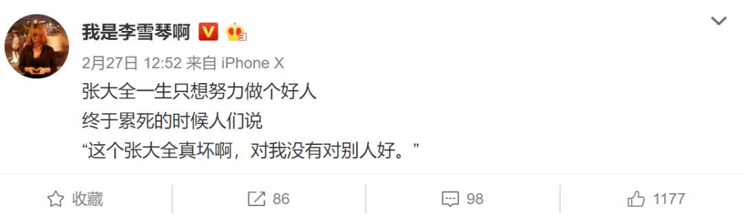 后来她发了一个微博,隐喻“好人累死”。
