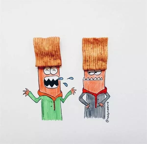 马来西亚的Nady Nadhire喜欢用自己平时爱吃的小零食,创作出各种有意思的小插画。想不到糖果mm豆薯片有一天也可以变为小艺术品,不知道Nady想不想尝试一下中国的辣条。