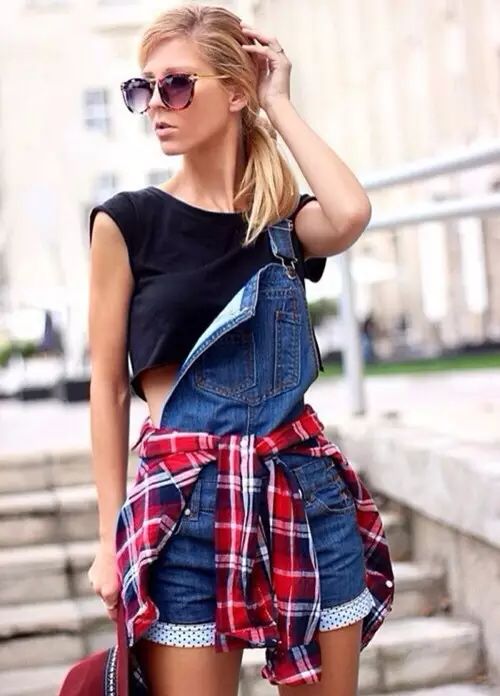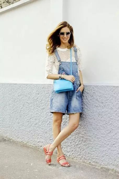 平时必须内搭吊带/抹胸的透视上衣,现在靠背带短裤也能直接穿上身了!