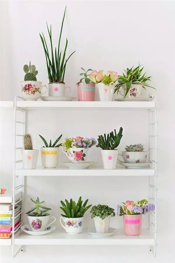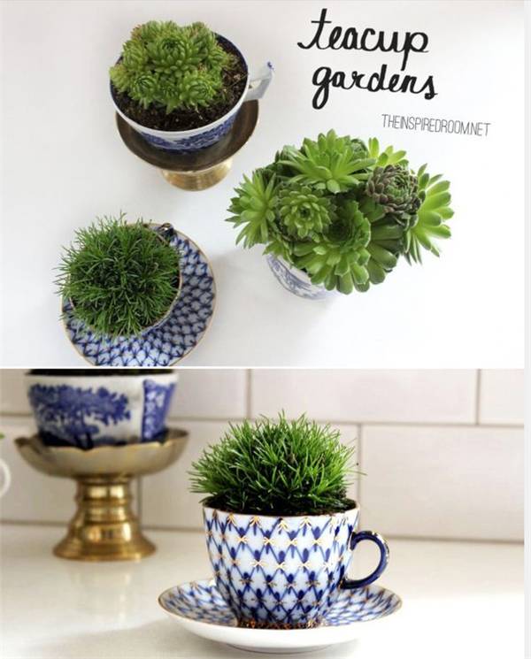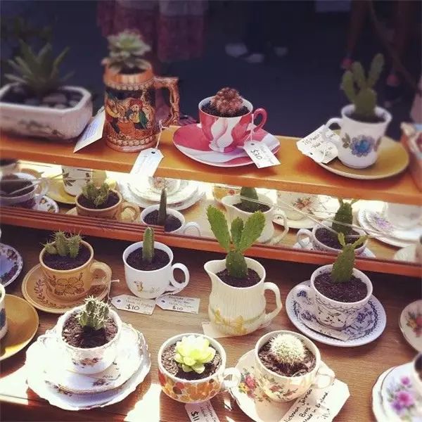 此外,闲置的带有图案或者素色的茶杯、马克杯,也都是种植花草的绝佳器皿,小小的一杯绿色,能给你带来沁心的感官享受。