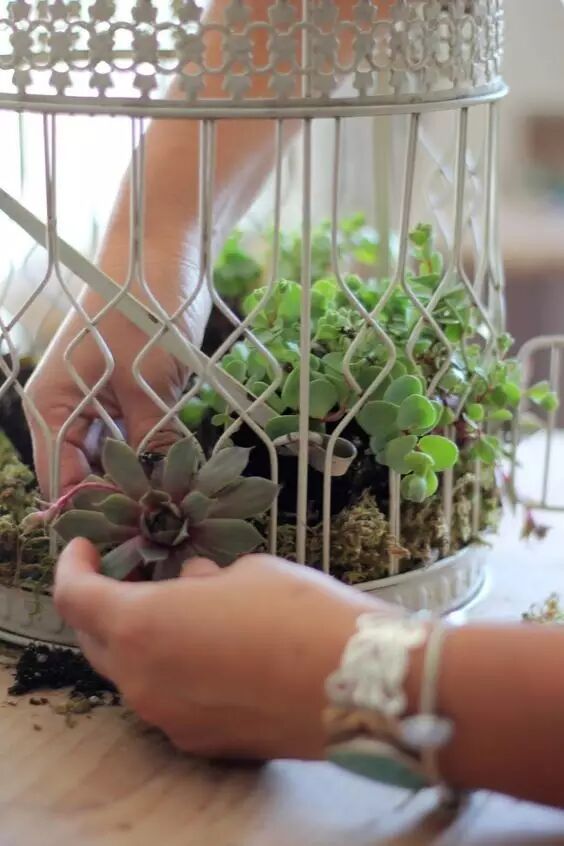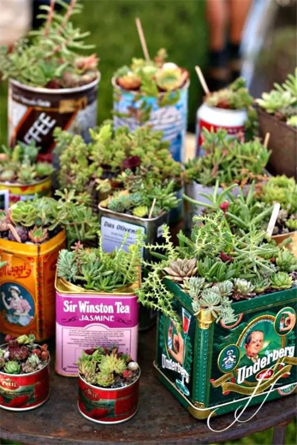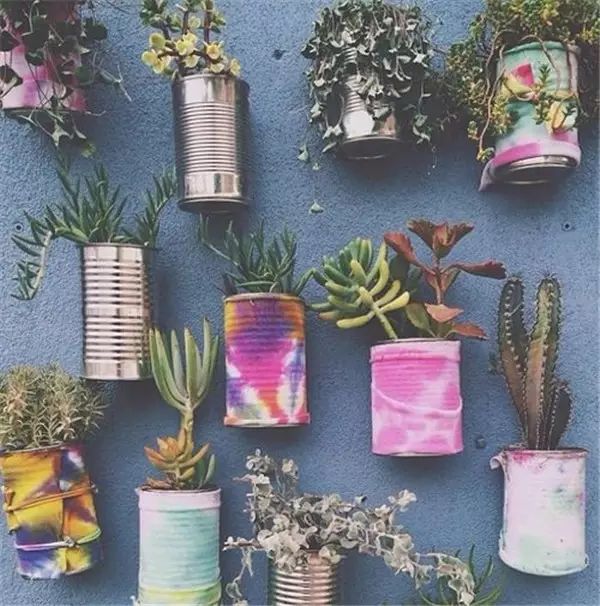 用完的罐头盒子或其他罐子不要扔,收集起来装些土,撒些种子,在罐底凿几个孔,追求貌美的可以自己再在罐子表面涂画上心仪的图案,一个看似随意却新颖别致的盆栽就完成啦~