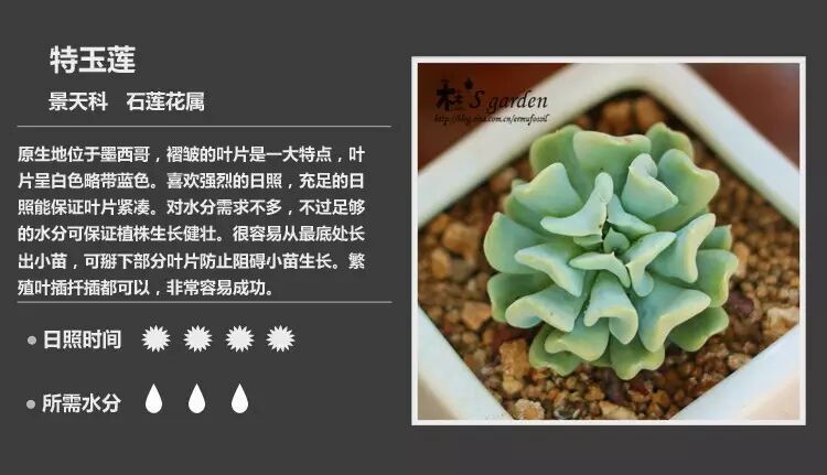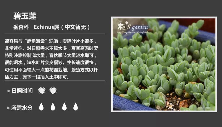现在养多肉的家庭是越来越多了,这150多种多肉植物对照图,包含了它们详细的习性、适合的日照时间和所需水分的描述,如果你也想家里变得萌萌哒,就赶快收藏起来吧。