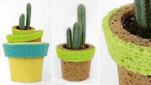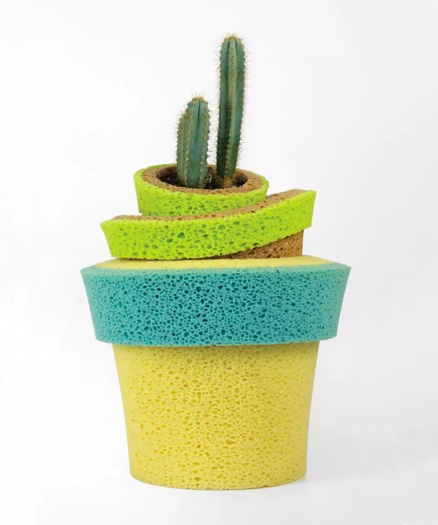 ▼ Stefano Claudio Bison 为那些忘记浇水的植物爱好者设计了这款海绵花盆
