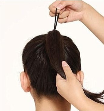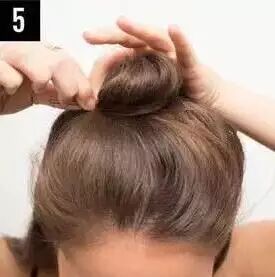 STEP3:将马尾在脑后盘成一个圆形的丸子头。