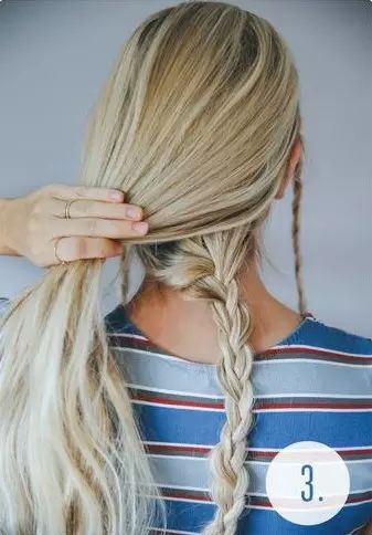 【 117 】Step 3:从脖颈上方取一束头发编三股辫直至发尾,发辫要比前额的发辫稍粗一些。