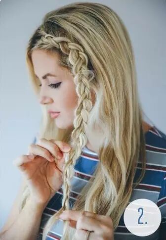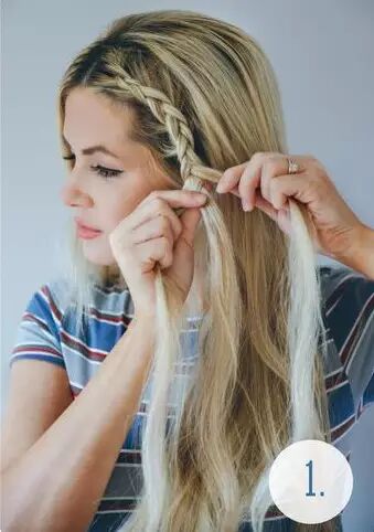 【 115 】Step 1:取前额头发沿发际线开始编法式辫,编到耳朵上方位置开始编三股辫直至发尾。