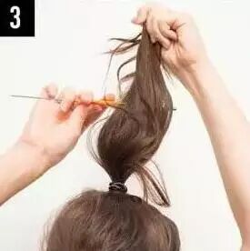 STEP3:将马尾的头发倒梳打毛。