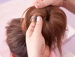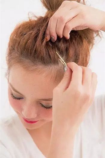 STEP7:用发卡将丸子头固定。