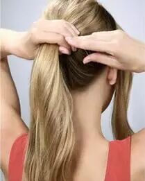 STEP2:中间部分的头发扎一个中等高度的马尾辫。