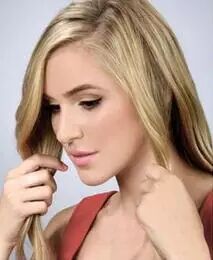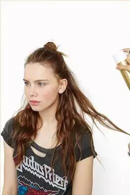 STEP8:用发胶喷在头发上,让半丸子头定型,同时可以用手指将下方垂落的头发抓的更加自然卷曲。