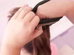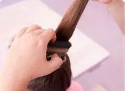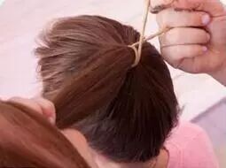 【 57 】第二步:取出一缕头发,缠绕在刚才的橡皮筋上。注意:不要将发缕全部缠完,留出一小部分备用。