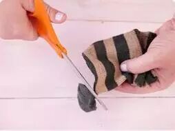 STEP1:找一只干净的旧袜子,将袜子的袜头部分剪去。
