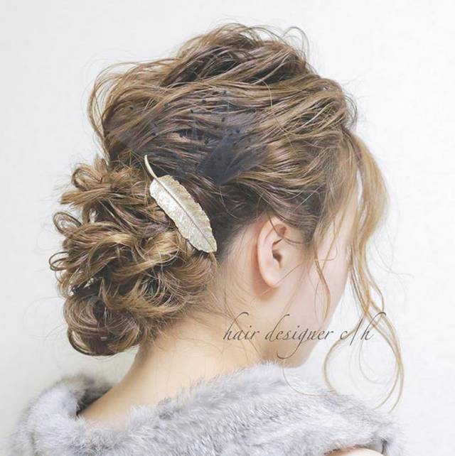 【 38 】STEP4:用发卡将丸子头固定紧。