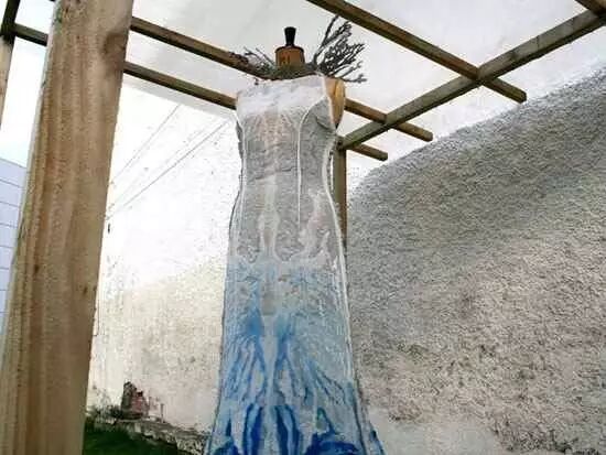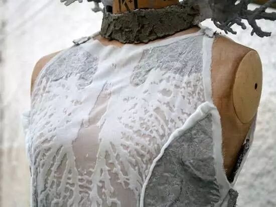 这条裙子被命名为Herself,由一种柔韧性极强的混凝土和纤维制成,这种特殊的混凝土材料可以吸收空气中的污染。虽然混凝土是喷射散布在纤维上的,但我总觉得穿这样的裙子不会太舒服……可是为了我们的地球母亲,鼓起勇气穿上它吧,毕竟还是蛮漂亮的。