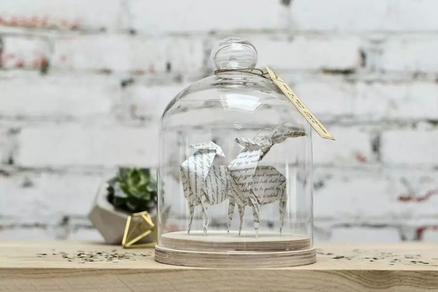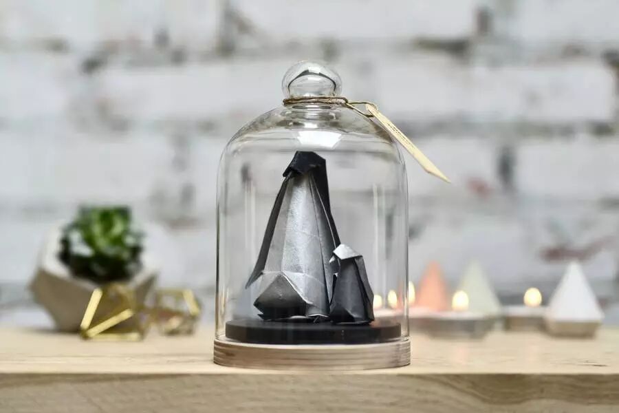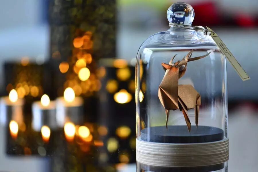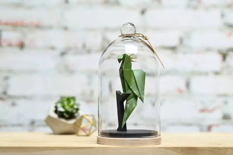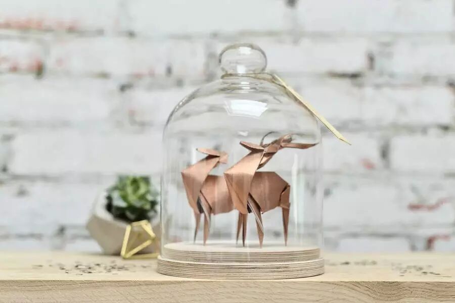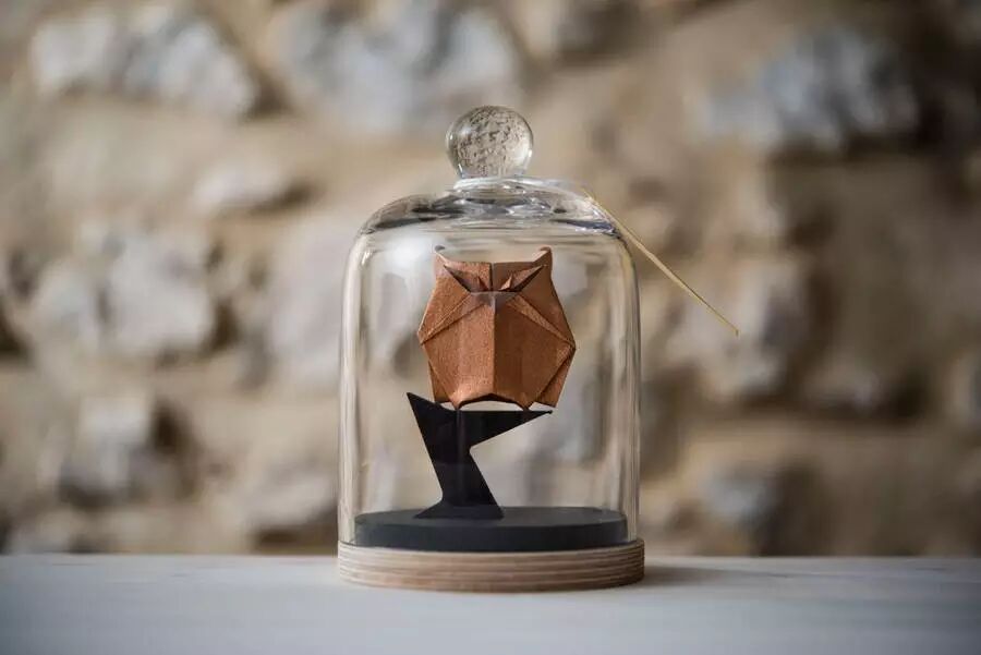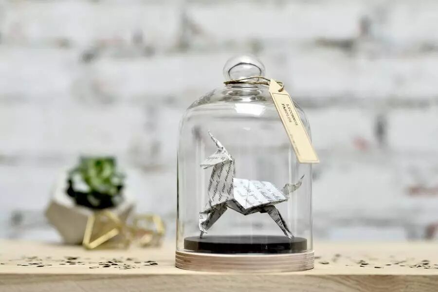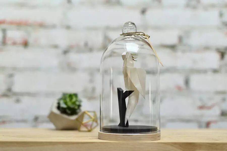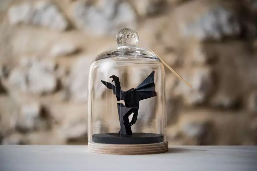 将她的折纸艺术品置入了拱顶玻璃瓶中