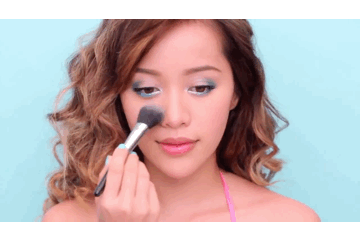13. 将矿物质粉饼粉饼轻轻扫在面部
