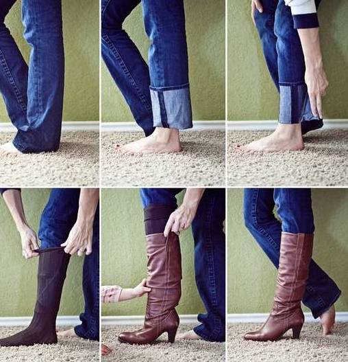▼15. 按照这样的方式把松垮的牛仔裤裤脚藏进靴子里!