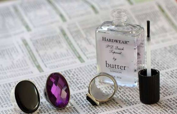▼4. 在戒指环涂上光油,来避免这些便宜的戒指卡在手指。