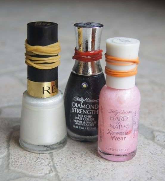 ▼6. 指甲油盖子老是很难打开?缠上几条橡皮筋吧!