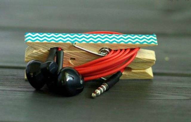 ▼20. 耳机绳子老是缠在一起吗?用夹子把它给定型吧。