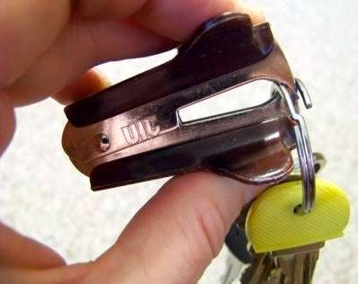 ▼17. 不要弄花你美丽的指甲,只要用订书机来撑开钥匙圈就好。