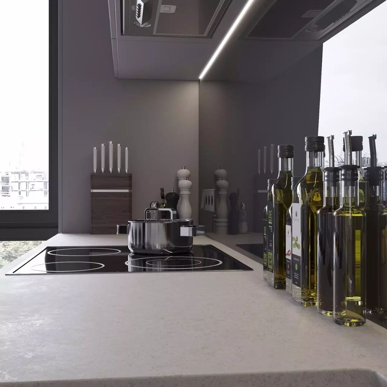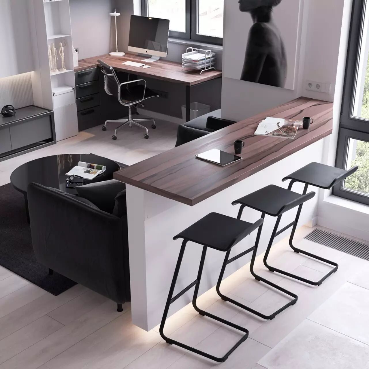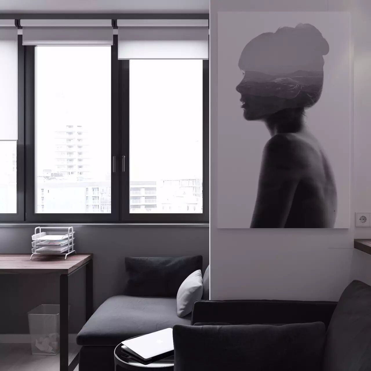 公寓中大多使用黑白两种颜色,配合极简的风格,但是功能却不单一,更不沉闷。虽然面积不大,厨房、洗手间、客厅、卧室以外,还有工作桌、吧台(用于餐桌)的位置,全因合理的收纳方案。除了壁柜、橱柜等一般的收纳方式外,更是运用好床下的空间。现代的榻榻米,解决了最实际的问题。