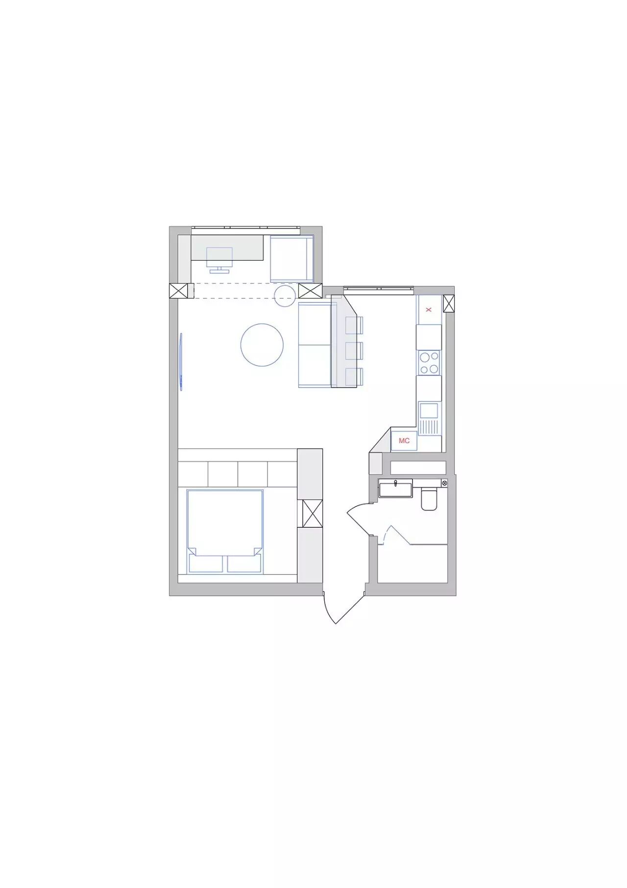 这是一处莫斯科的公寓,45平米,由当地设计师 Maxim Nizovkin 规划空间方案。