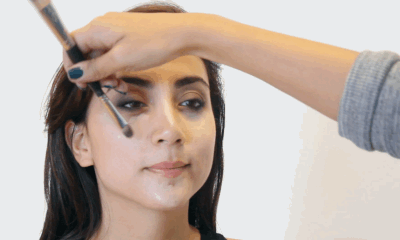 首先在眼下三角区部位涂高光。目的是让泪沟消失,苹果肌膨起来,看起来青春活力~▼