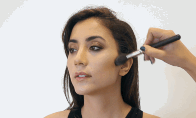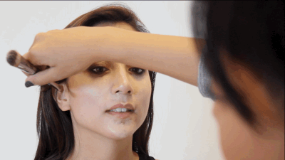 最后一步很重要,是不是大花脸就看有没有彻底晕染好,让高光和阴影之间过渡得更自然。可以用美妆蛋,也可以用刷子,用按压的方式让颜色融合得更好。▼