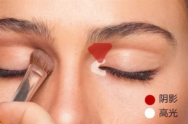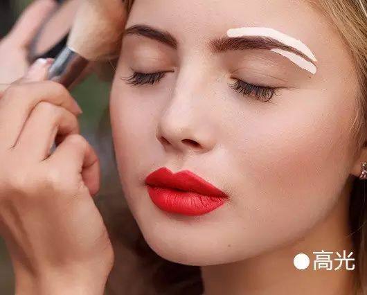 还可以沿着眉毛上沿也窄窄地画一道高光,让眉骨看起来更高一点。眉毛后半段下沿也可以画上一道高光,突出眉毛,弱化浮肿眼皮。▼