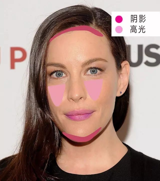 长脸的同学自然是祈祷自己的脸短一点,上下都往里推一点就完美了。于是在额头上和下巴底你们需要两道阴影,可以不打高光。要打的话在眼部下三角多打点,突出中间,模糊两头。▼