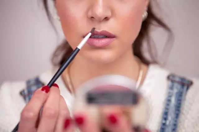 下巴过于突出的,也不够美观。针对下巴的修容可以分两步,在下巴最底下打阴影,显得下巴没那么长;嘴角下一点打高光,这样制造层次感,目光主要集中在嘴边。▼