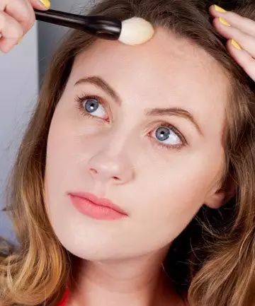 鼻梁两侧涂上阴影会让鼻子看起来更高挺。这一步对鼻子扁平的姑娘来说,很管用。▼
