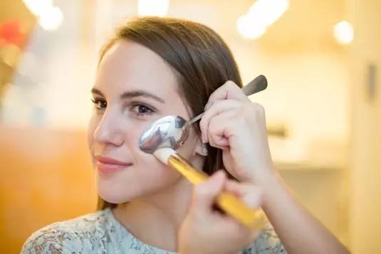 网上曾经还流行一种小妙招,拿一把最最普通的勺子,盖在颧骨或苹果肌上,然后在勺子下沿扫阴影。▼