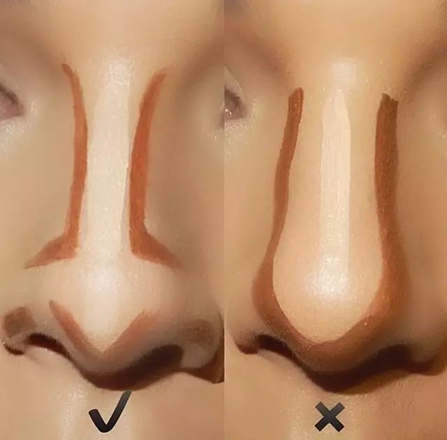 鼻子旁边的阴影正确的涂法是左边这样的,形成一个小V字。▼